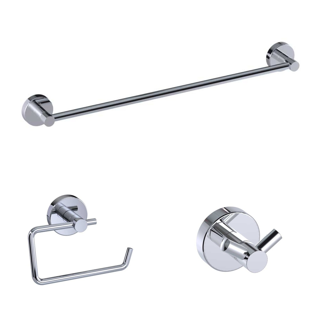 PROJE Accessories Set is 3-pice Hanger with Double Pins - Long Towel Holder - Toilet Paper Holder.